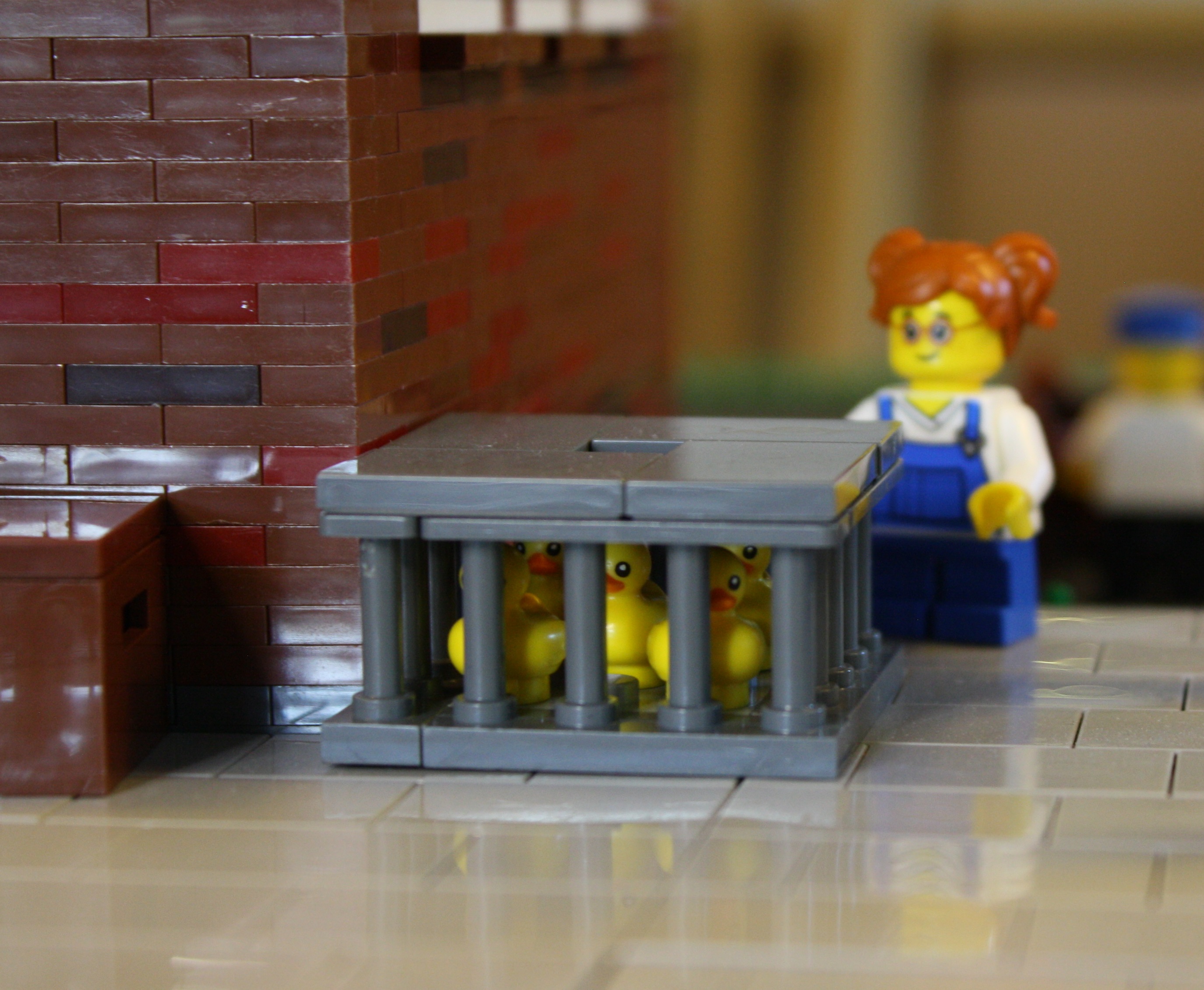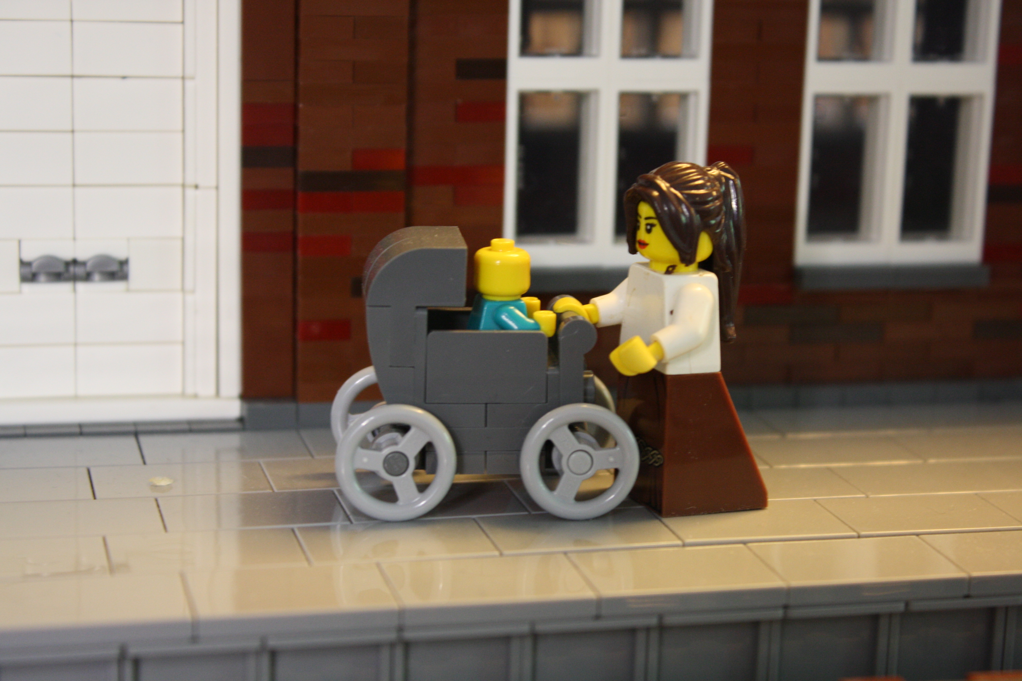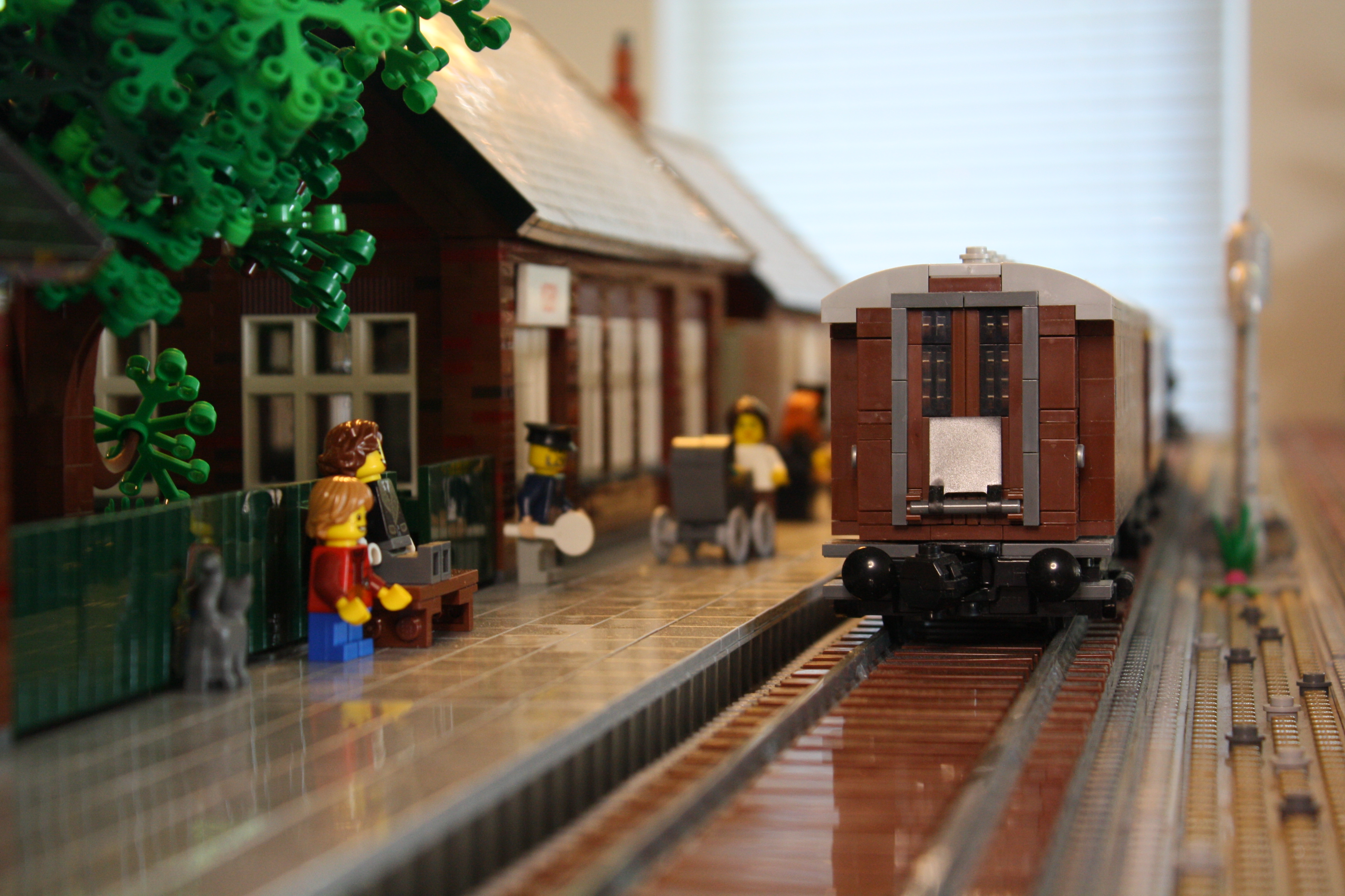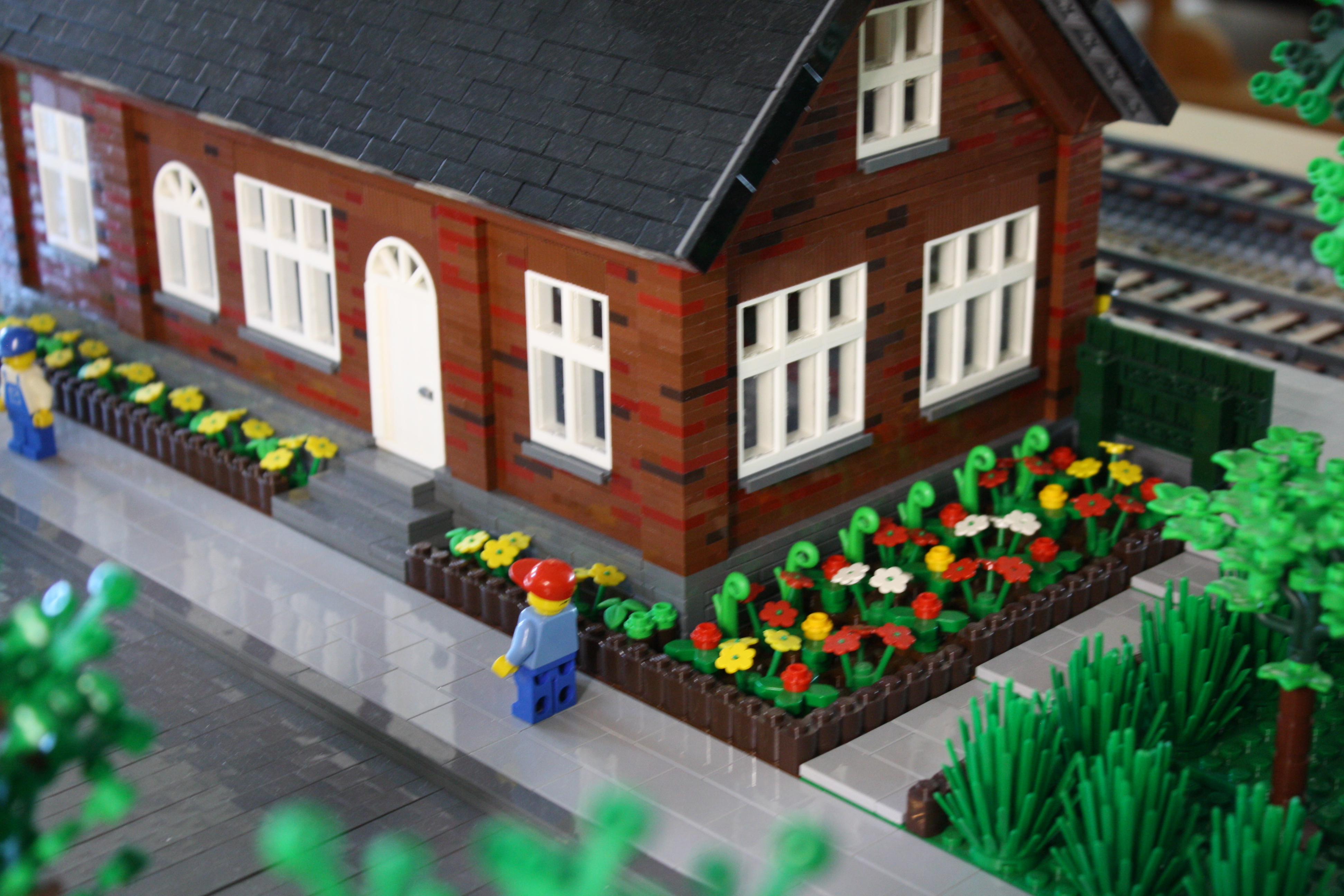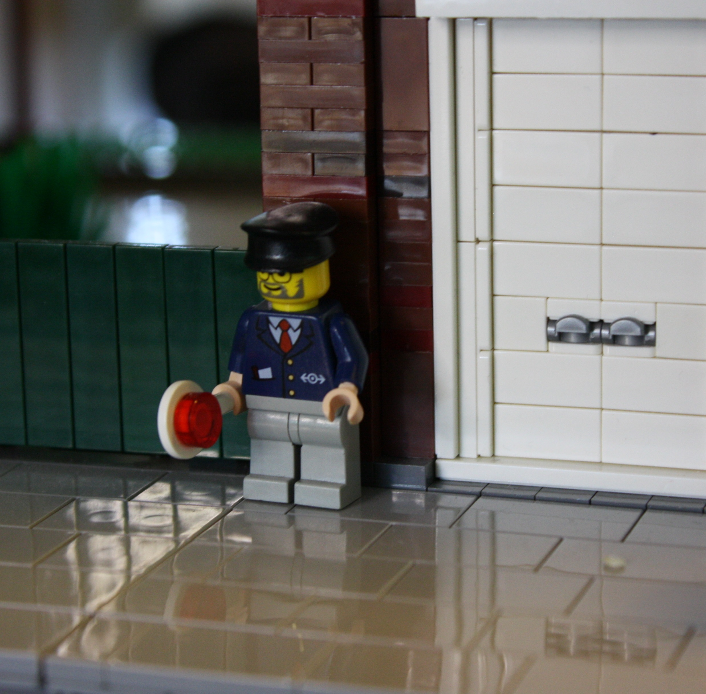 Virkelig flot og minder mig om andre mindre stationer rundt om i DK. Det eneste der lige slår mig, er at jeg nok ville forsøge at "patinere" lidt, så det blev lidt mindre glat, støvsuget, pænt. Det kunne f.eks. være en revne i fliserne, måske lidt "ukrudt" a la noget grønt, f.eks. langs en væg, så der er noget der bryder med linjerne. Det er ikke fordi det skal være grimt og tilgroet, men det ville tilføje lidt realisme, når nu LEGO elementer ellers er så glatte